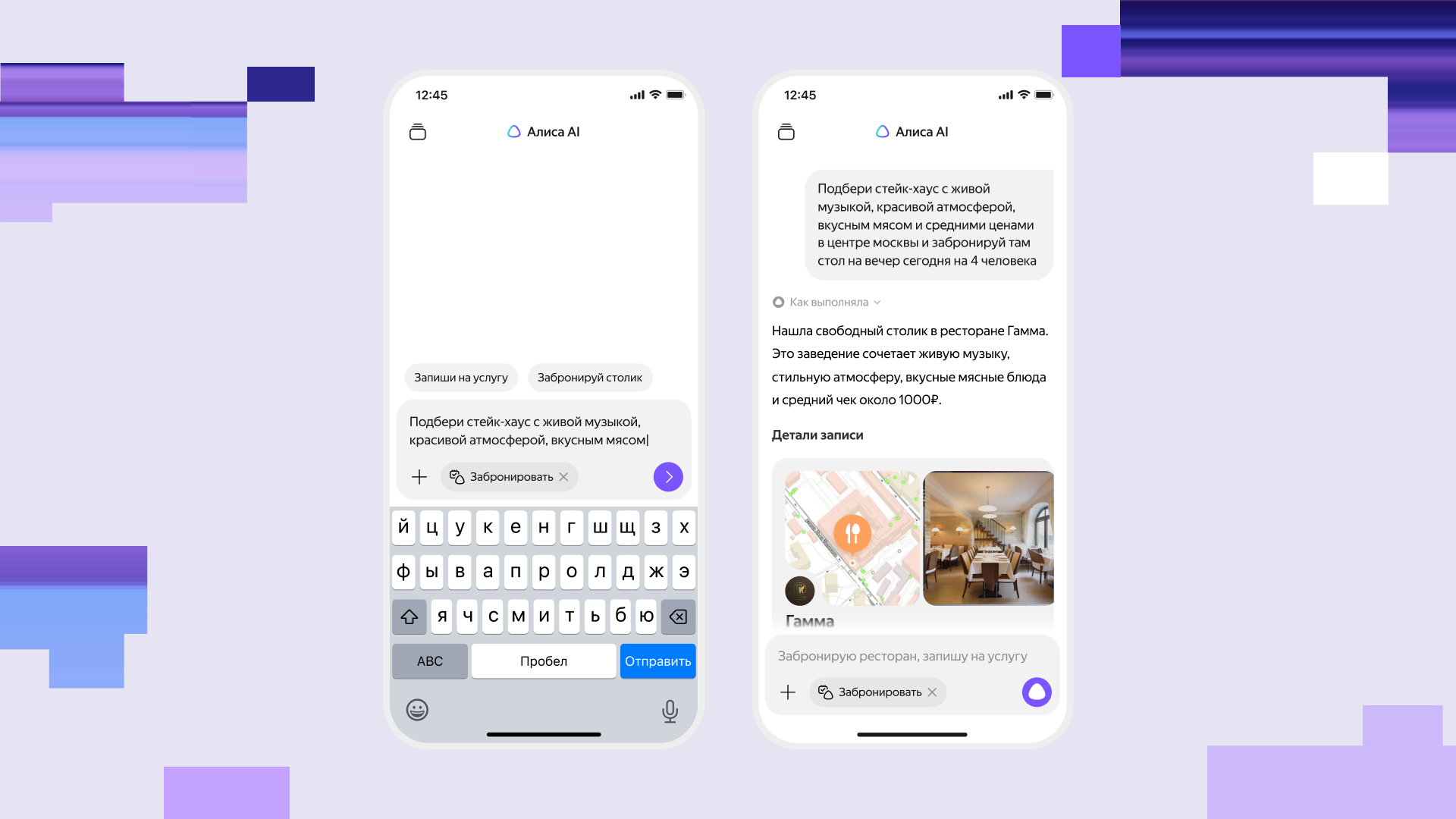 В скором времени нейросеть начнет помогать горожанам в таких вопросах, как вызов такси, оформление доставки, заказ готовых блюд и продуктов. В рамках сервиса Яндекс Go появятся ИИ-агенты, исполняющие эти операции по команде ассистента. Алгоритм Алисы AI проанализирует запрос, идентифицирует подходящий для его выполнения сервис и активирует соответствующего агента — Такси, Еды, Лавки или Доставки. К примеру, после фразы «Алиса, мне нужно отправить другу торт» система подключит агента Доставки, который уточнит нюансы, подберет оптимальный тариф и подготовит бланк заказа.