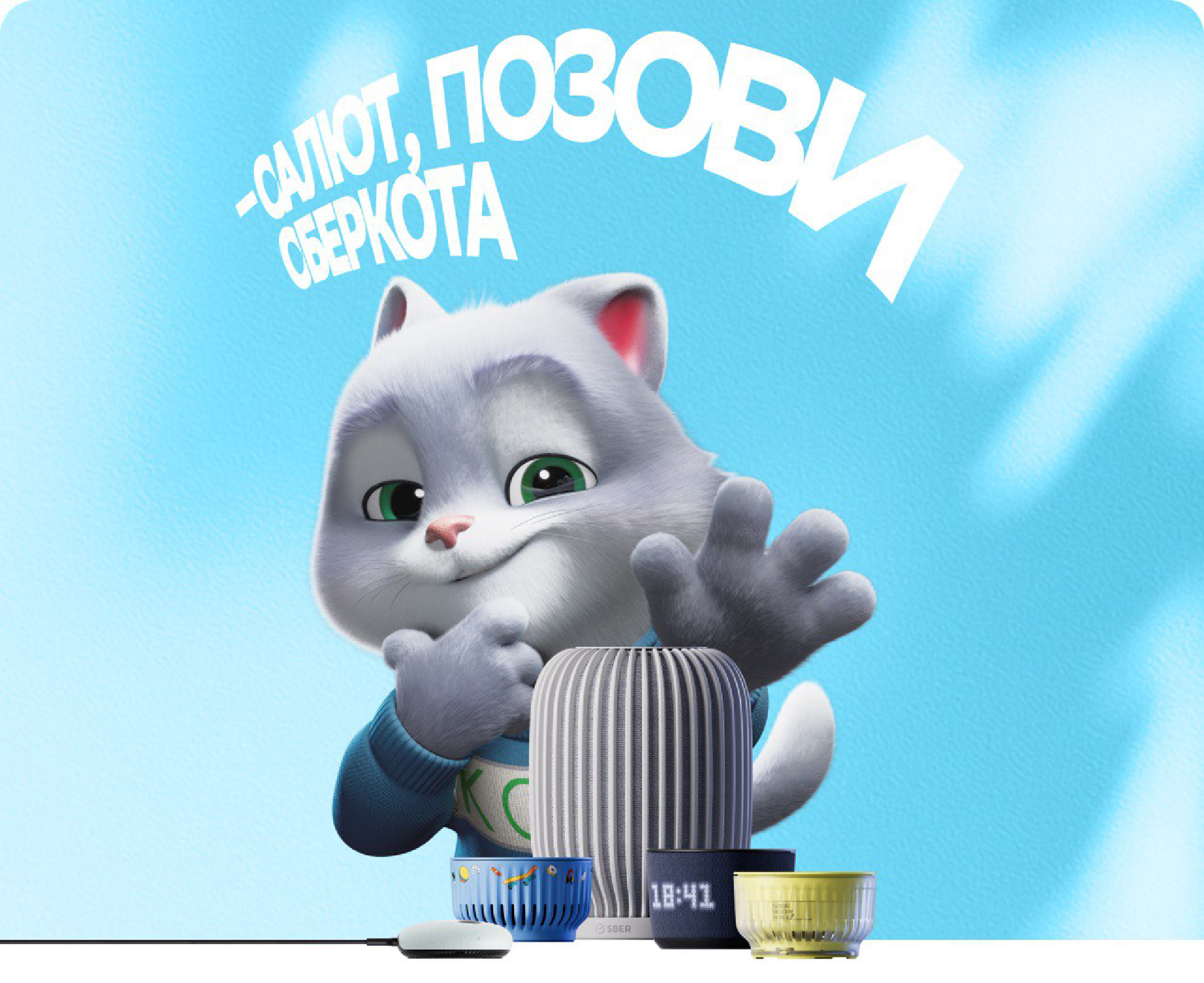 В умные колонки Sber с ГигаЧат интегрирован СберКот — новый персонаж, выступающий в роли умного друга и помощника для детей. Для его активации достаточно произнести голосовую команду умному устройству: «Салют, позови СберКота!»