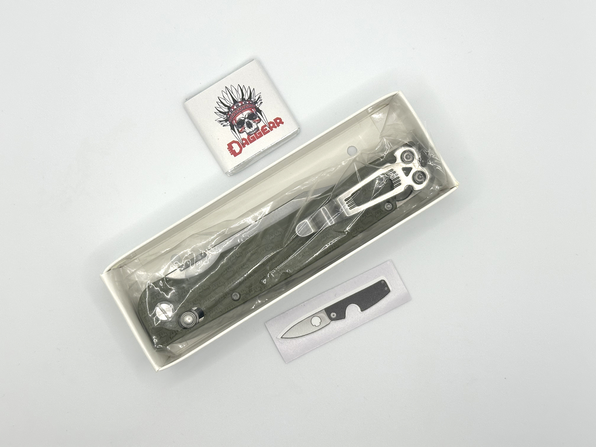 В чёрной картонной коробке с логотипами Daggerr и Discover Line в белой выдвижной ванночке вы получаете сам нож в целлофановом пакете, а также отдельно от производителя наклейку и маленькую шоколадку — пустячок, а приятно ☺️