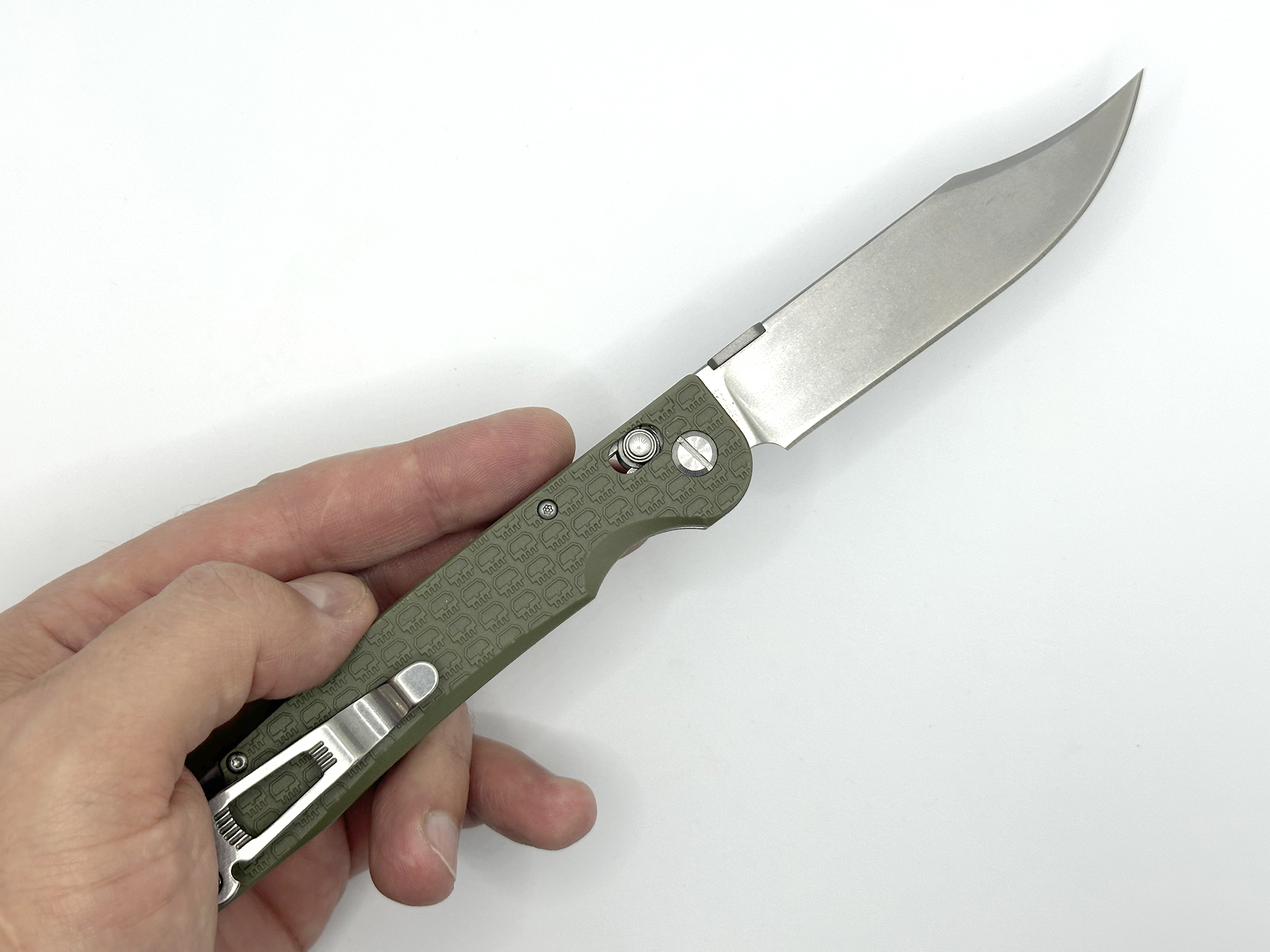 На самом деле Механику Pike сложно назвать пушечной, «ассиста» здесь явно не хватает, раскрывается нож на четвёрку: при текущей длине клинка ему просто тяжело, хотя X-lock отдаёт и фиксирует лезвие прекрасно. В любом случае эргономика требует привычки и мы бы, по возможности, покрутили модель перед покупкой. В руке нож лежит неплохо, удержание комфортно как прямым, так и молоточным хватом, а рукоять не скользит даже во влажной ладони.