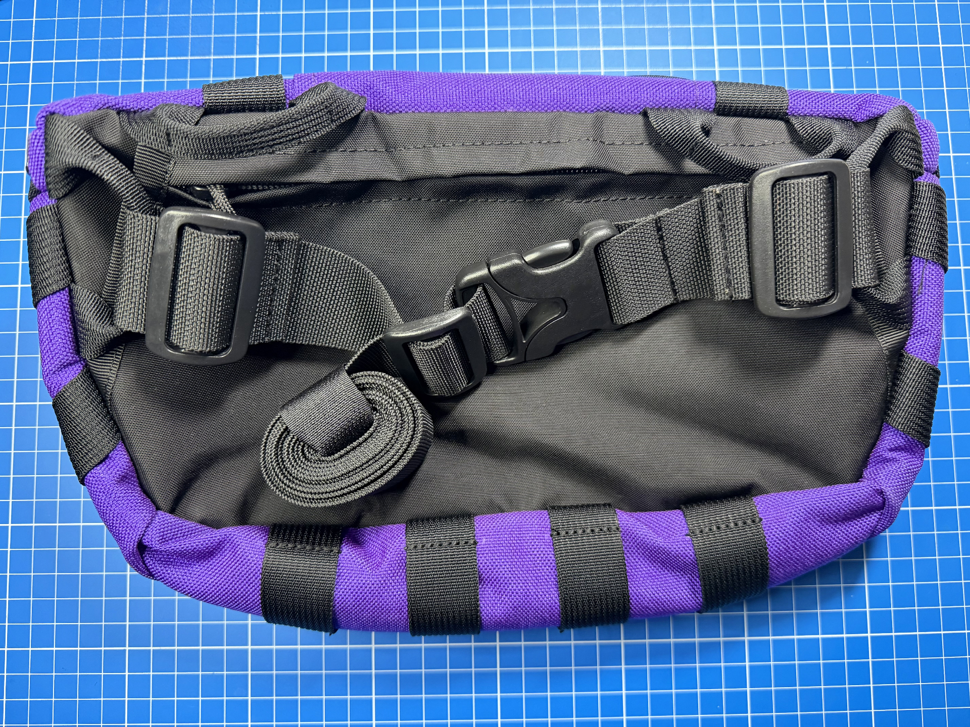 Передняя панель включает небольшой карман на молнии, пяти сантиметровую велкро, а также внушительный набор M.O.L.L.E. вставок, которые аккуратно заходят на боковые и нижнюю панели сумки, позволяя крепить различные аксессуары.