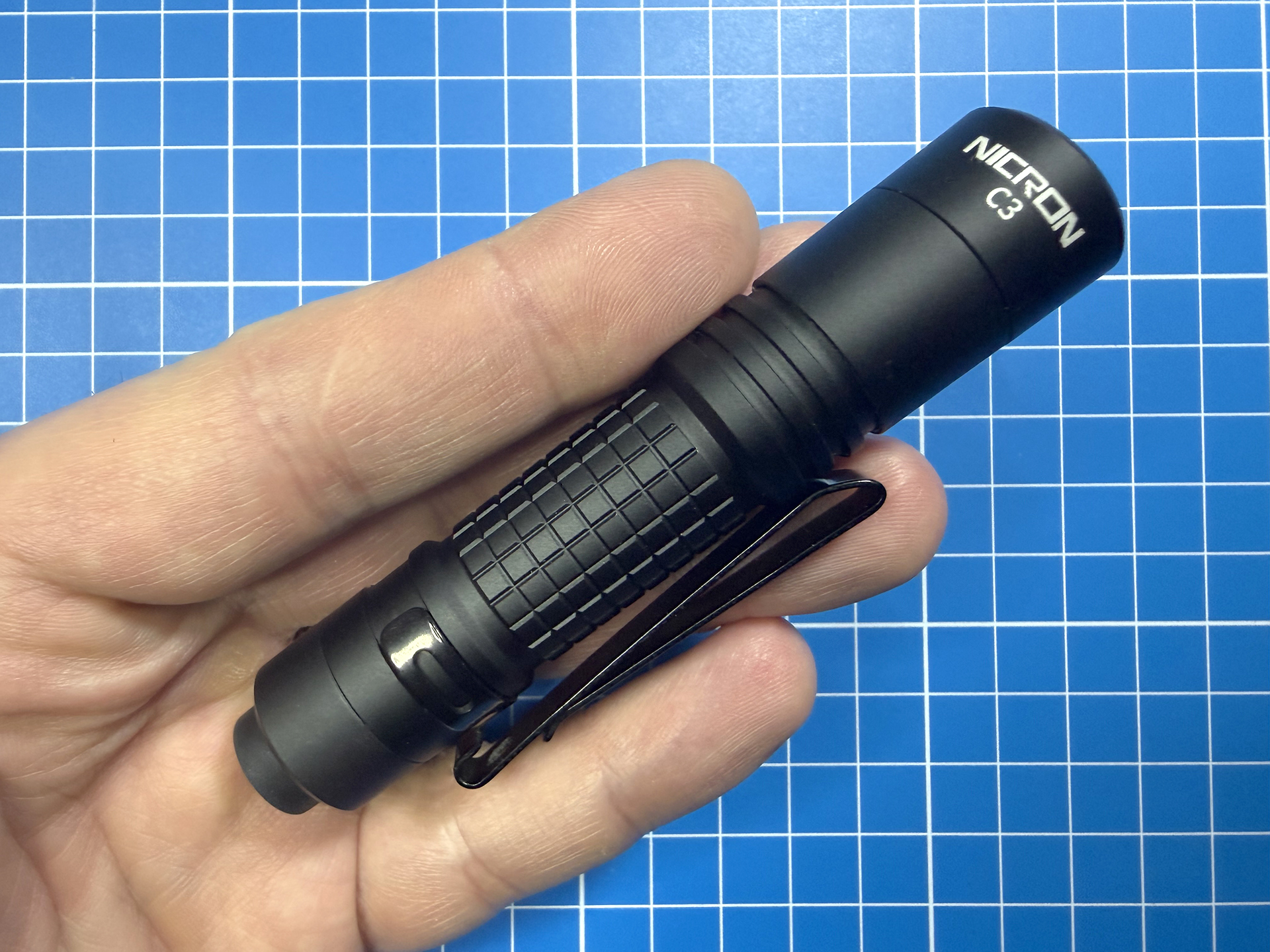 Размеры NICRON C3 компактные, длина всего 11,65 см, а вес — 55 г (с установленной батареей). Фонарь удобно бросить в EDC-сумку, где он не будет съедать место, либо повесить на пояс, на карман или запястье.