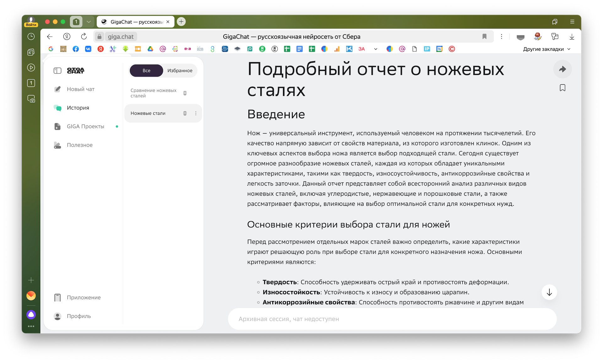 Из интересного отметим, что мощный искусственный интеллект GigaChat постоянно развивается, с ним всегда можно подискутировать, уточнить нюансы на интересующие вас сферы жизни, а также запросить помощь в подготовке исследования или доклада на заданную тему (результат появится в вашем аккаунте на GigaChat)