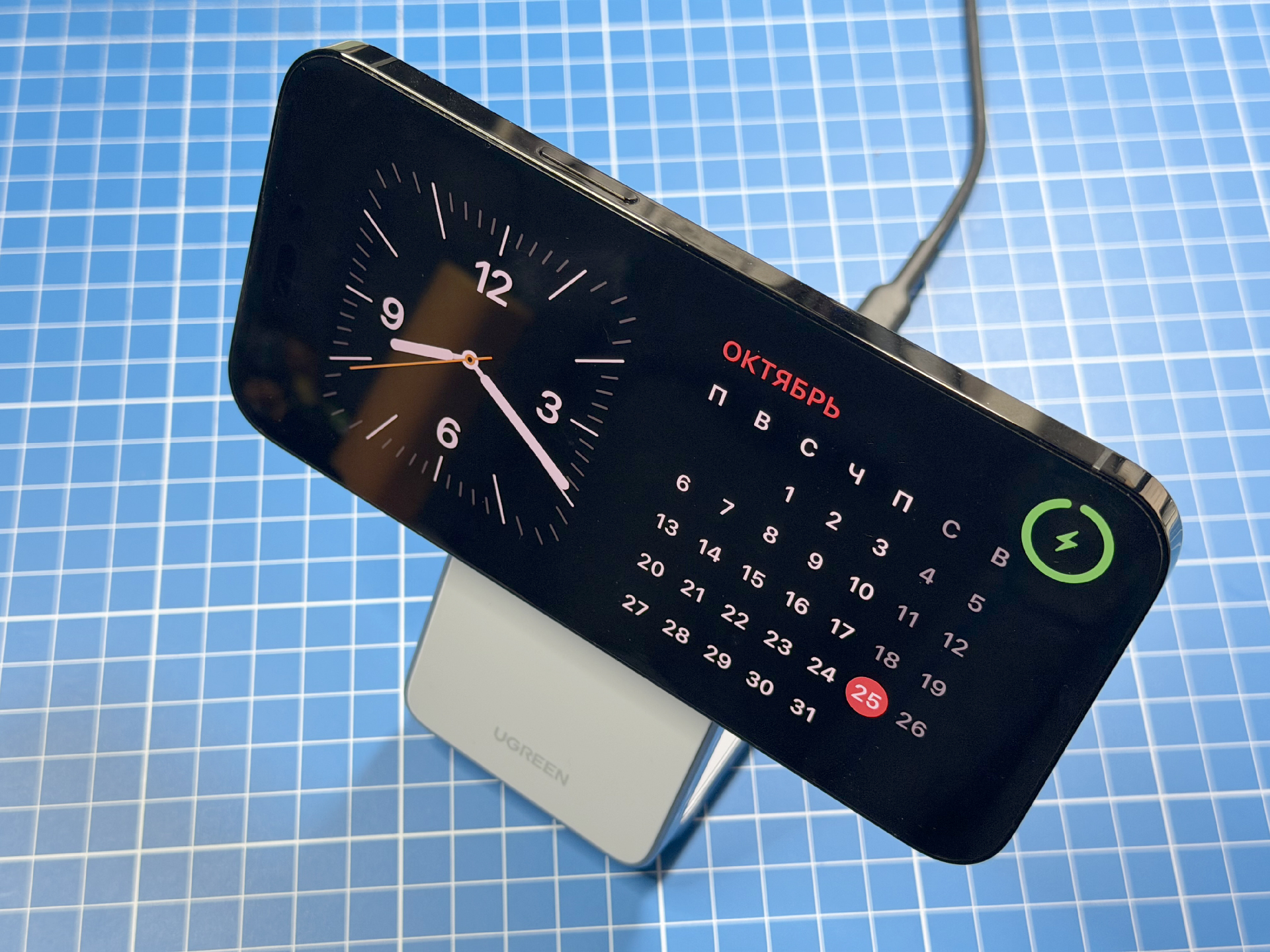 В части эксплуатации можно сказать, что у W756 эргономичные площадки для заряда, надёжный разъём USB-С и мощный магнит на верхней панели, который без проблем удерживает массивный Apple iPhone 17 Pro Max.