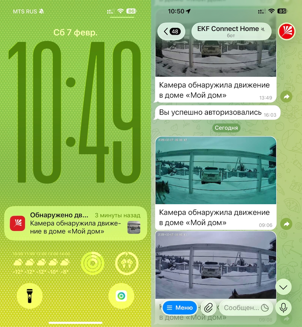 Камера фиксирует движение и/ или звук, присылает уведомления в телеграм-канал в формате скриншотов, а вам лишь остаётся понять, насколько данное оповещение требует вашего внимания и стоит ли на него отвлекаться или просто проигнорировать ☺️